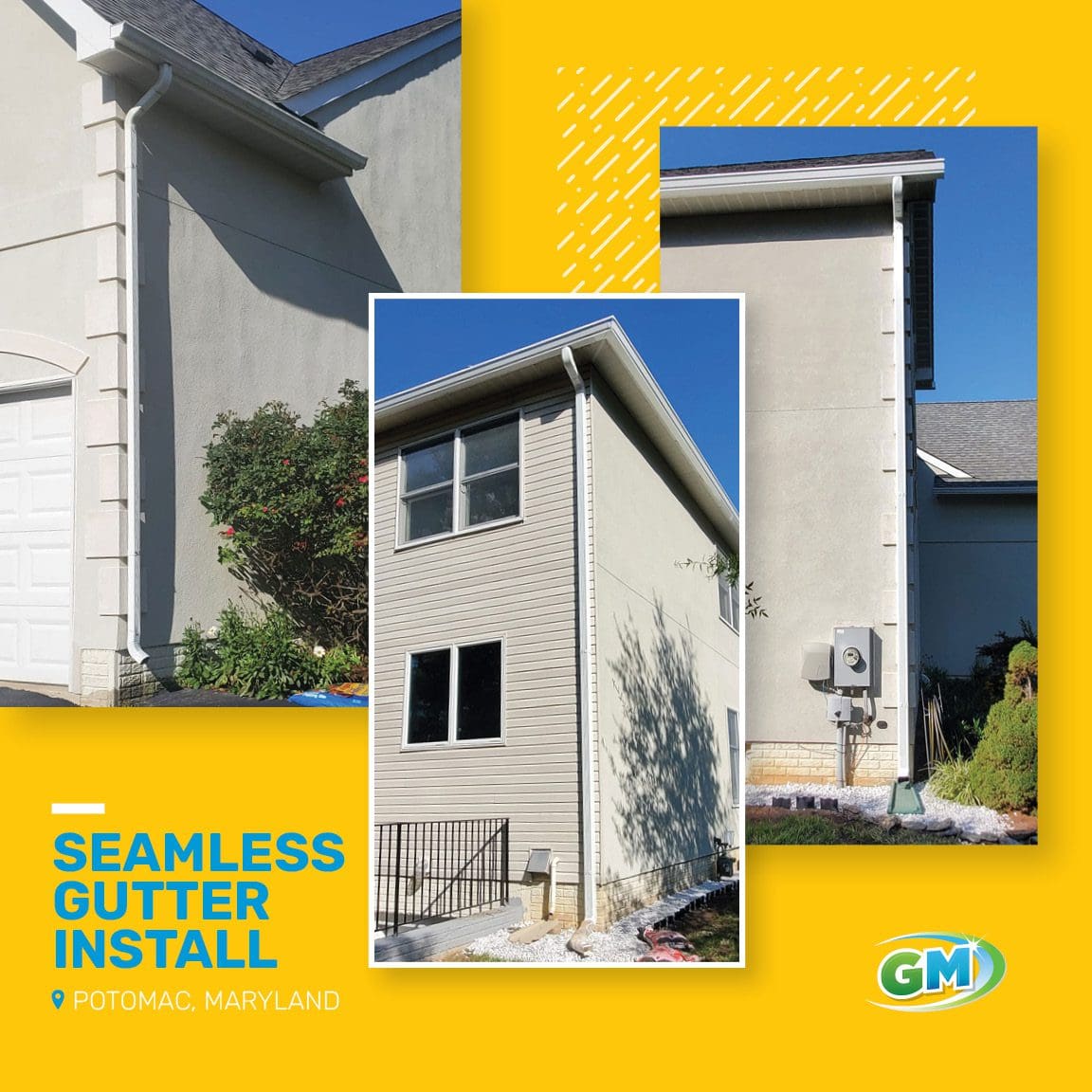 This Potomac, MD client replaced their old undersized gutters, with new 6 inch seamless aluminum gutters. Having a professionally installed gutter system is not only crucial for proper water management, but new gutters add aesthetic value as well. We offer over (26) different color options to compliment any style/color home.
