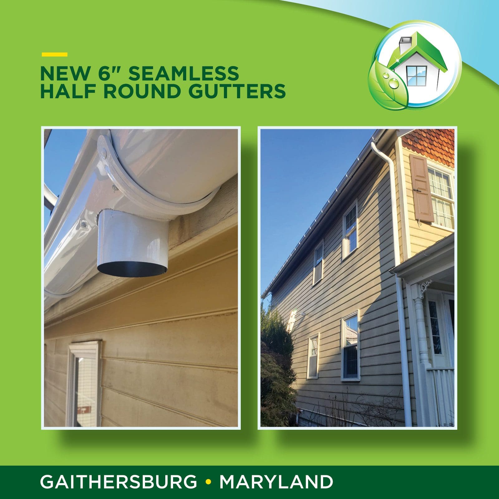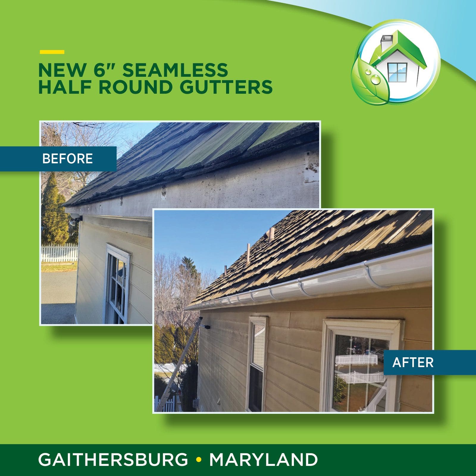 Check out this recent project based in Gaithersburg, Maryland. We installed brand new 6” half round seamless gutters that not only look aesthetically appealing, but now protect the building from structural damage caused by rain water and debris.